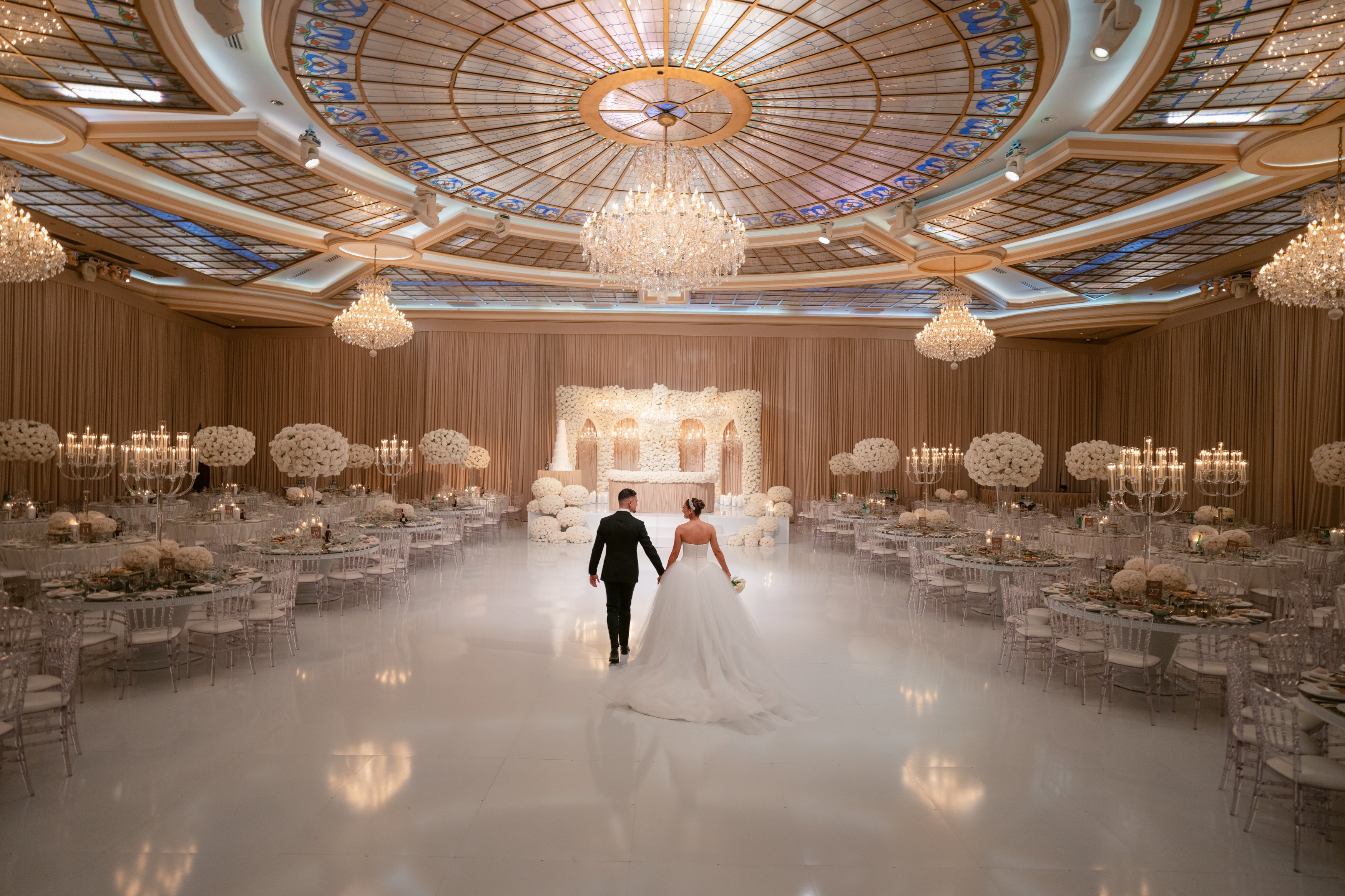Alex and Maria’s wedding was a celebration of young love, filled with delicate details and soft, romantic tones. The décor highlighted their story with white and pastel cream flowers beautifully paired with warm, glowing candles.